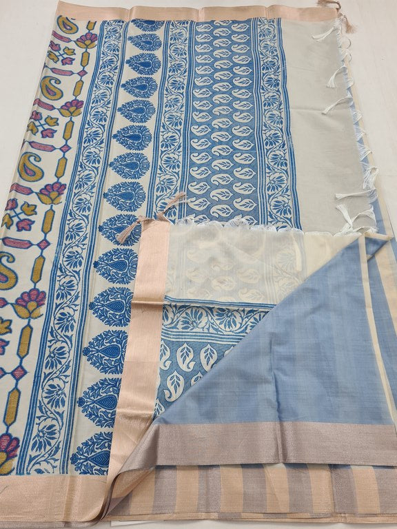 This Semi-silk saree pairs beautifully with traditional gold jewelry or minimalist accessories for a more modern look