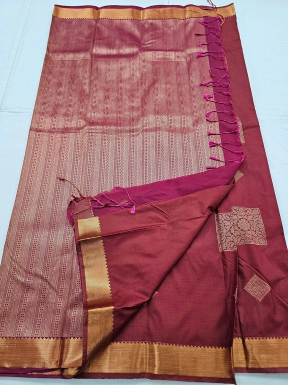 This Semi-silk saree pairs beautifully with traditional gold jewelry or minimalist accessories for a more modern look