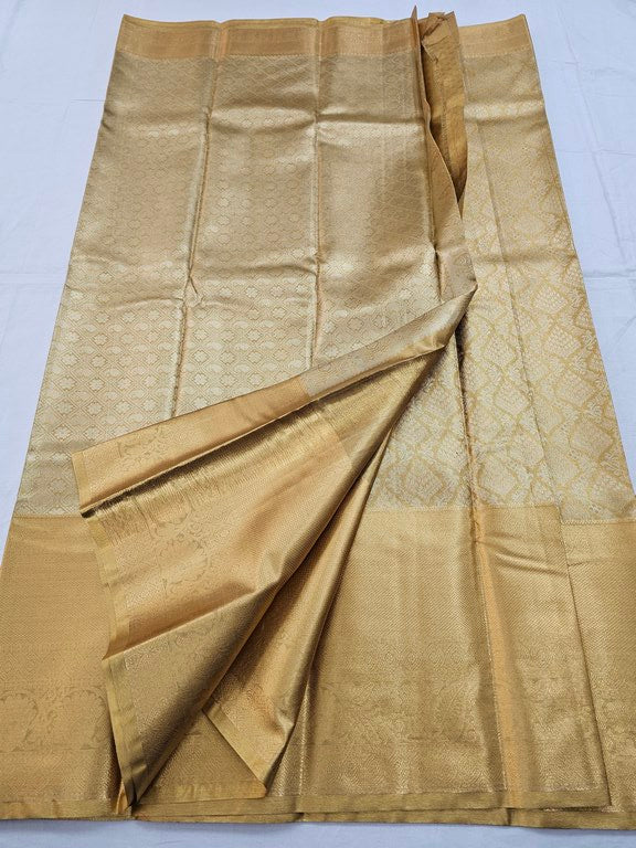 This semi-silk saree pairs beautifully with traditional gold jewelry or minimalist accessories for a more modern look