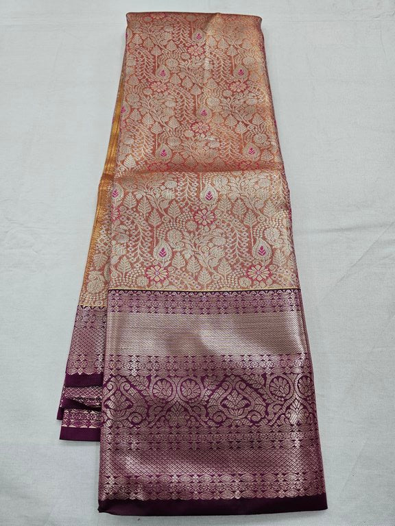This semi-silk saree pairs beautifully with traditional gold jewelry or minimalist accessories for a more modern look