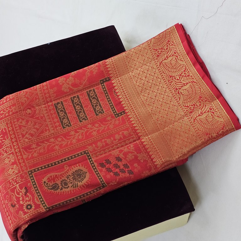 • Craftsmanship: Fine, detailed weaving across the body, border, and pallu