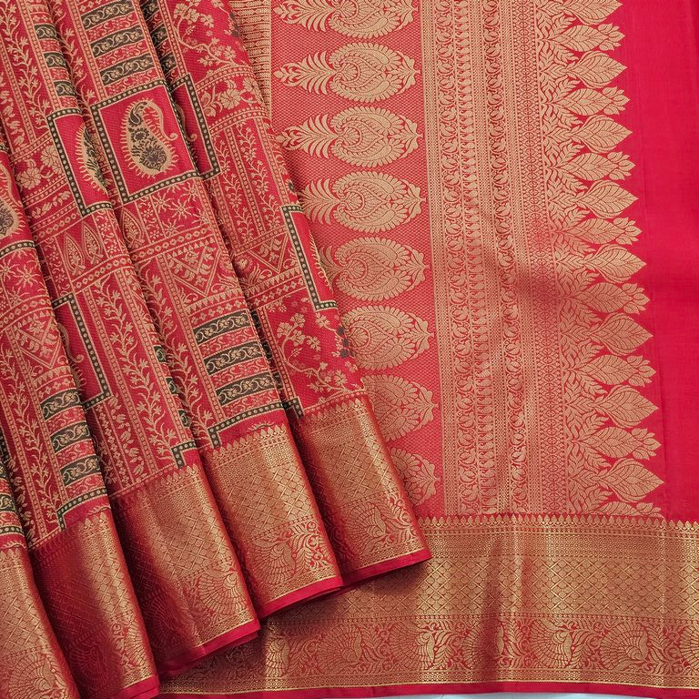 Kanchipuram Pure Elegant Red Bridal Silk Saree 036