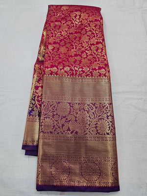 This semi-silk saree pairs beautifully with traditional gold jewelry or minimalist accessories for a more modern look