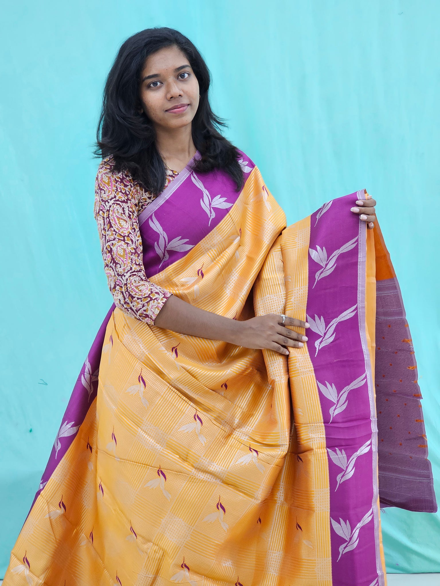 This Semi-silk saree pairs beautifully with traditional gold jewelry or minimalist accessories for a more modern look