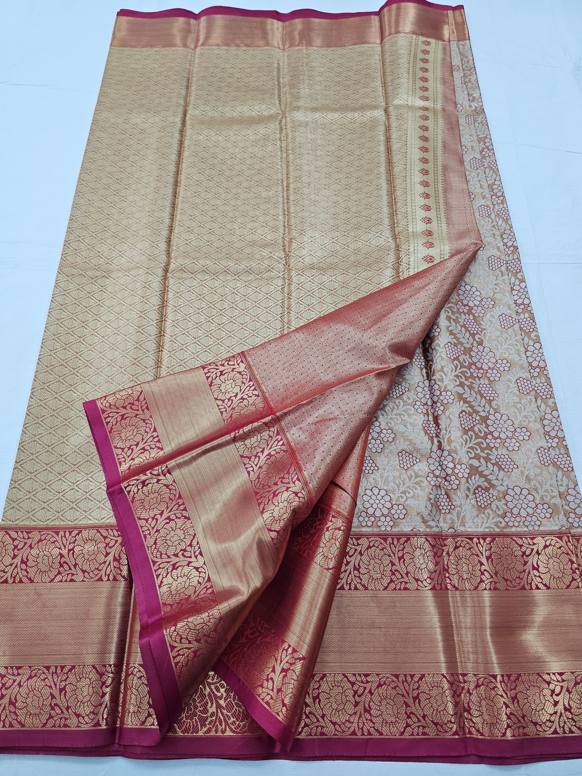 • Design: Bridal-inspired patterns with rich zari and detailed borders