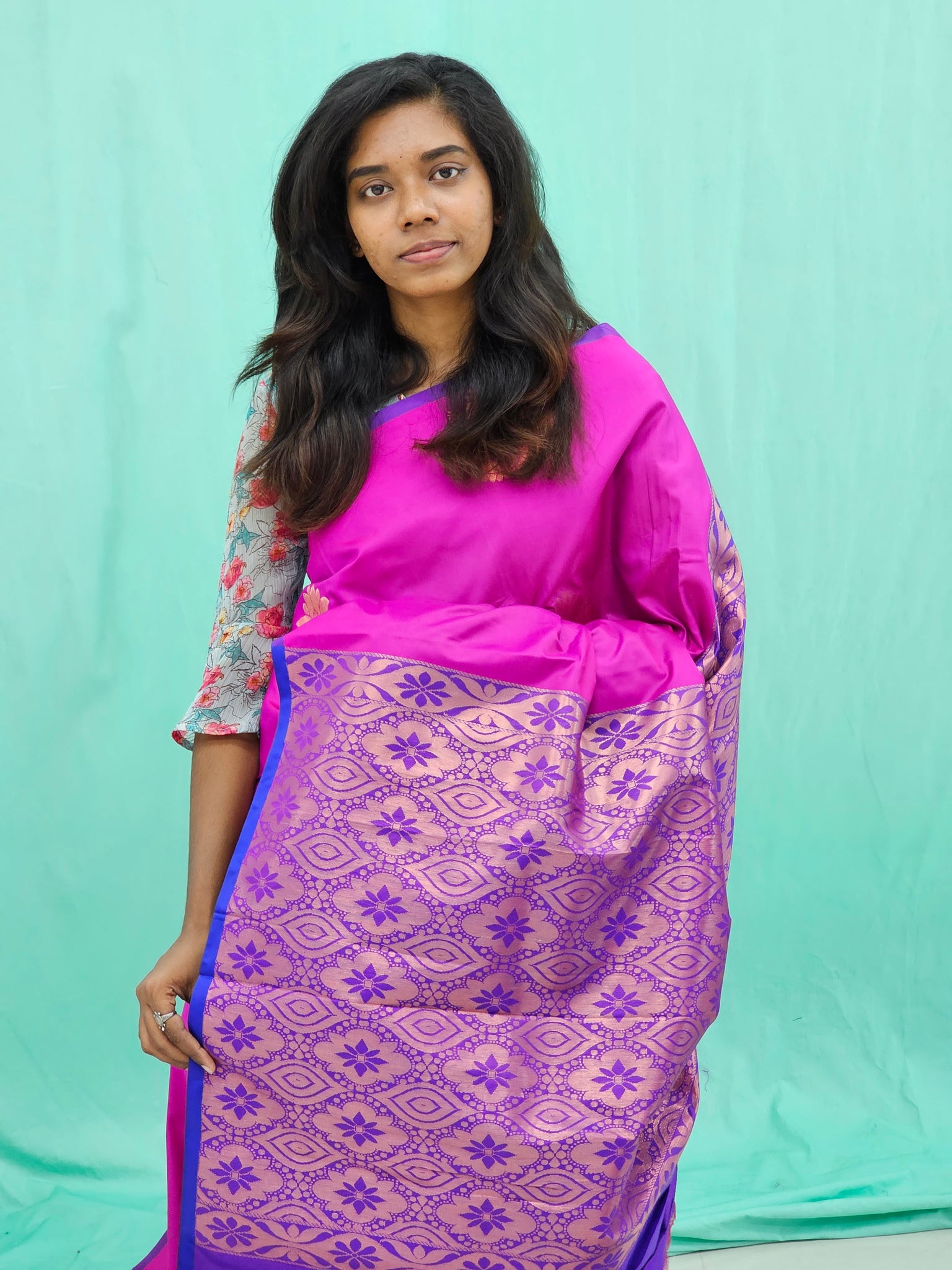 This Semi-silk saree pairs beautifully with traditional gold jewelry or minimalist accessories for a more modern look