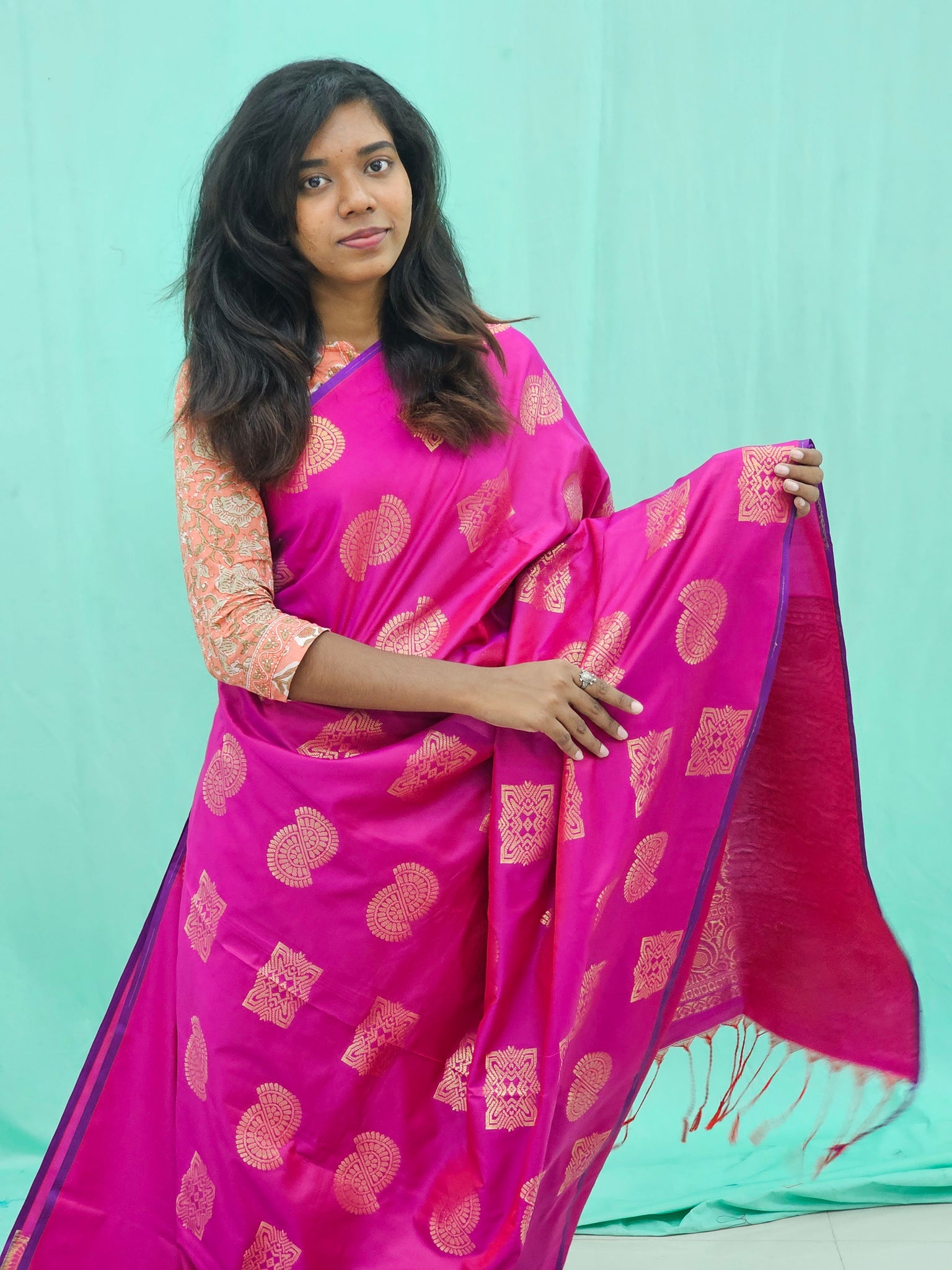This Semi-silk saree pairs beautifully with traditional gold jewelry or minimalist accessories for a more modern look