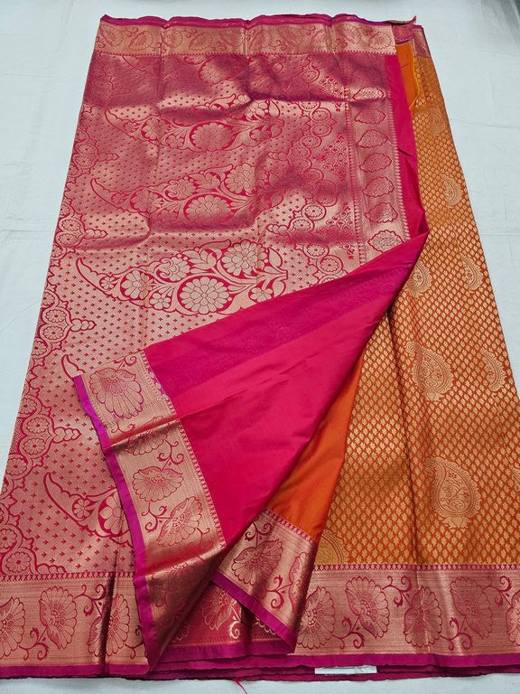 This semi-silk saree pairs beautifully with traditional gold jewelry or minimalist accessories for a more modern look