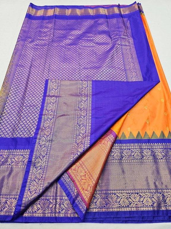 This semi-silk saree pairs beautifully with traditional gold jewelry or minimalist accessories for a more modern look