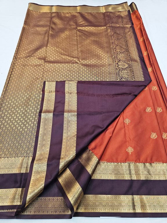 Trending Rust Orange Silk Sarees(Gap Border)201